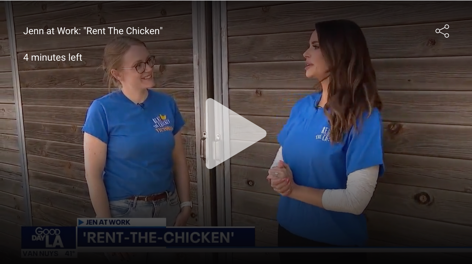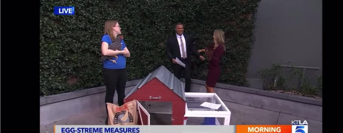 We brought two of our rentable hens and our entire Rent The Chicken coop set up to the KTLA Weekend Mornings studio. The ladies did a great job showing off how sweet and a bit silly they can be.